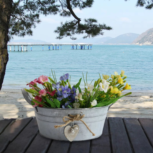 1Pc Retro Iron Flower Pot Vintage Metal Flower Container for Farmhouse Garden Home Decoration