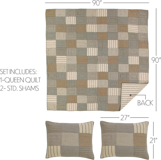 Sawyer Mill Patchwork Chambray Cotton Farmhouse Bedding Pre-Washed Square Sham Queen Quilt Set, T...