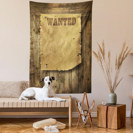 Western Tapestry, Old Wooden Texture Background with Vintage Wanted Poster Sign Wild West Print, ...