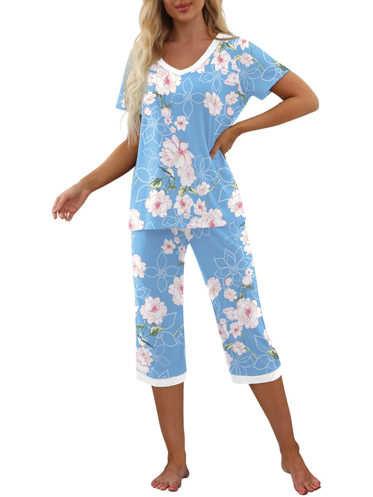 Women'S Pajama Sets Short Sleeve Shirt and Capri Soft Pajama Sets with Pockets