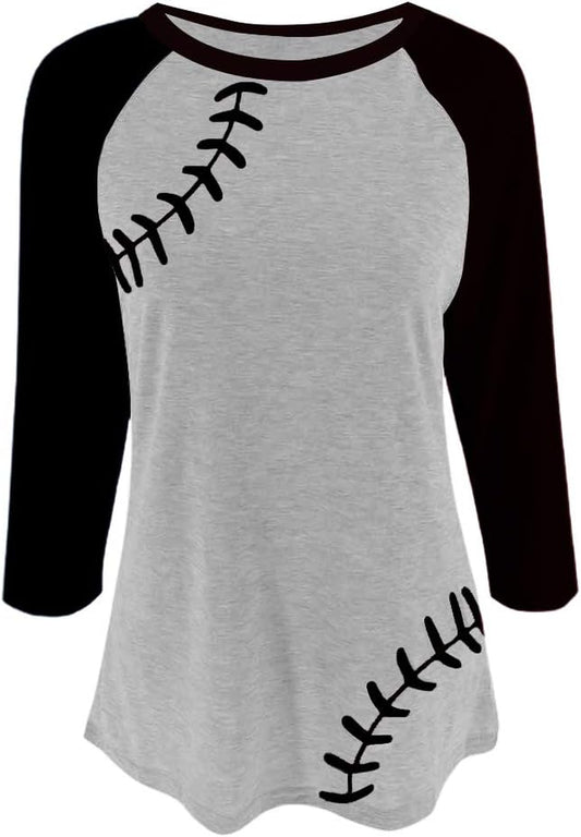 Womens Raglan Shirts 3/4 Sleeve Baseball Tee round Neck Patchwork Casual Blouse Tops