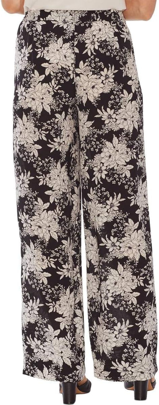Womens Floral Print Botanical Wide Leg Pants B/W 4 Black