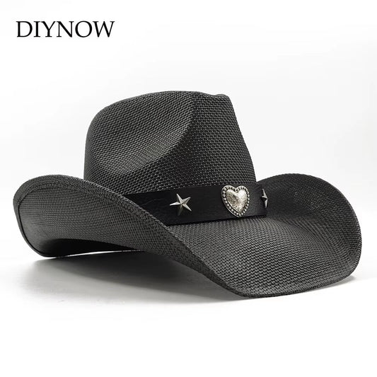 Love Belt Accessories Western Cowboy Straw Hat Fashionable Men and Women Summer Sunshade Straw Ha...