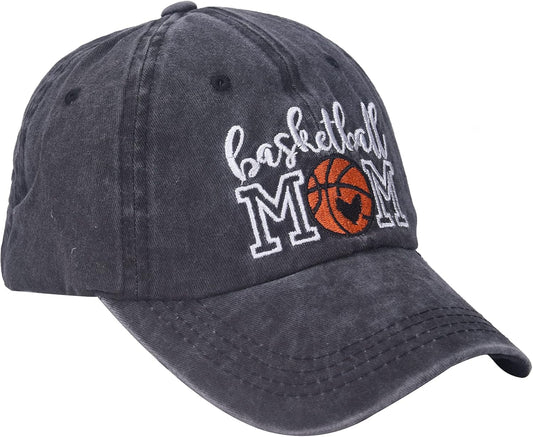 Distressed Basketball Mom Baseball Cap for Women, Adjustable Washed Dad Hat for Mama