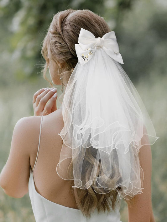 Bridal Hair Bow Veil White Bow Clip Bachelorette Party Decorations Pearl Accessories Bride to Be ...