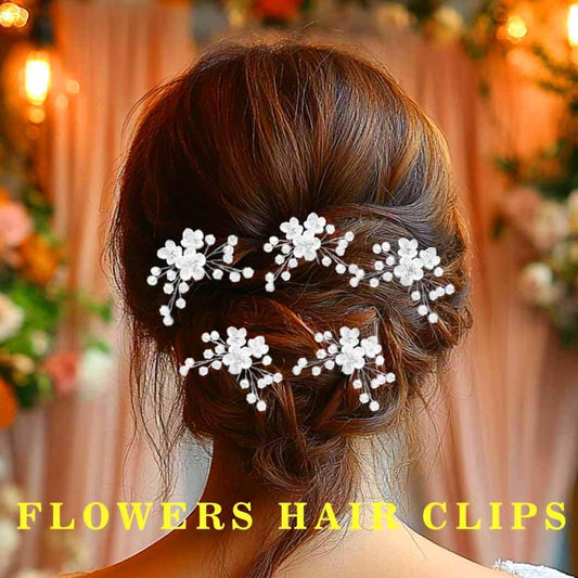 Wedding Flowers Hair Clips Silver Bride Hair Pins Floral Hair Accessories for Women