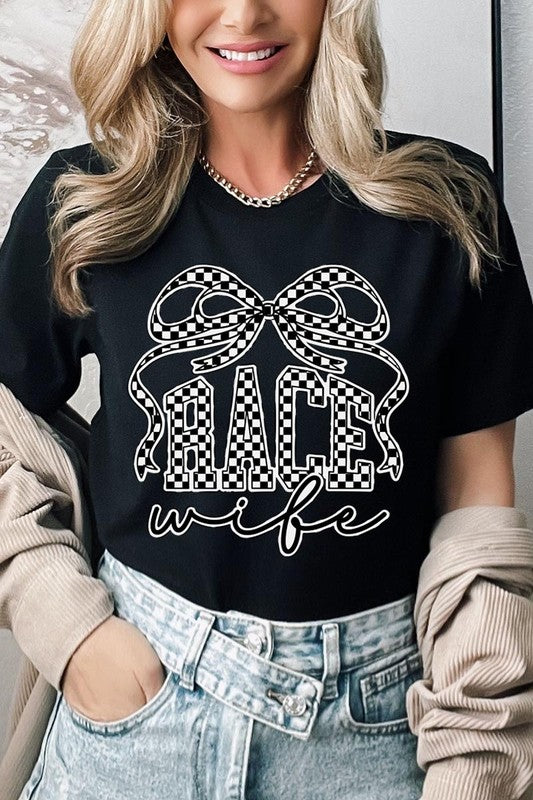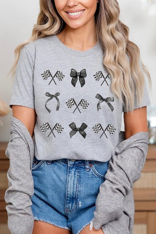 Checkered Flag Black Bow Race Graphic Plus Tee