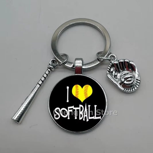 Baseball Softball Convex Photo Glass round Dome Keychain Jewelry, DIY Keychain