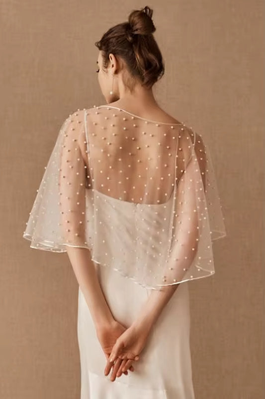 Pearl Wedding Bolero Tulle Wrap Top Cover Bridal Shrug Women White Ivory Cape Bride Jacket Party ...