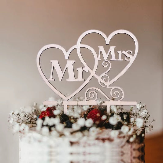1Pc Hollow Wooden Letter Love Just Married Mr&Mrs Cake Topper Bride and Groom Wedding Cake To...