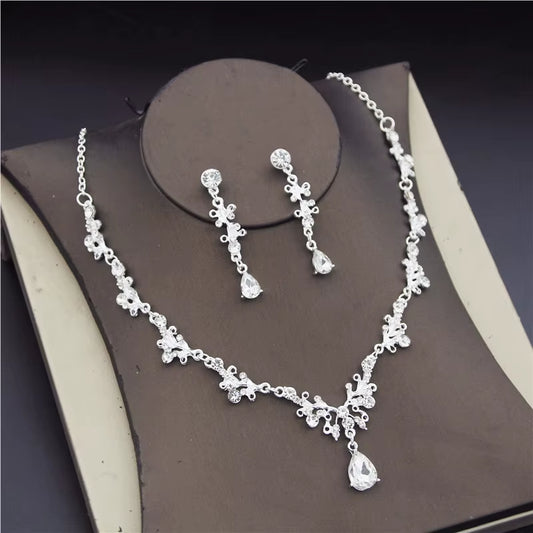Fashion Bridal Jewelry Sets for Women Earring Necklace Set Rhinestone Crystal Wedding Necklaces E...