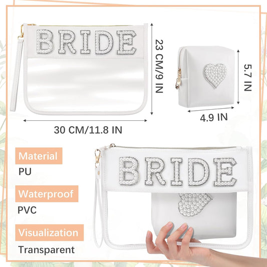 2 Pcs Bride Bag Makeup Bag Bride Gift Cosmetic Bag Pearl Letter Bags Portable PU Leather Mrs Clea...