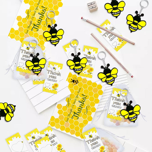 60 Pack Bumble Bee Keyring Pack Including 20 Keychains, 20 Thank You Tags and 20 Bags for Bee Par...