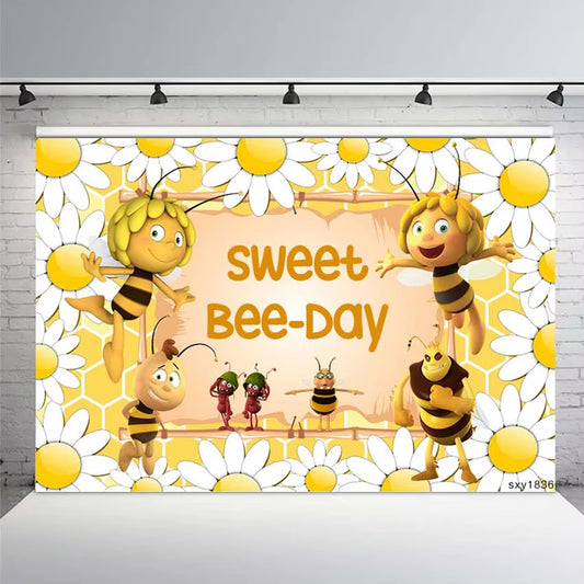 Maya the Bee Photography Background Sunflowers Baby Bee Day Newborn Backdrops Photo Studio Birthd...