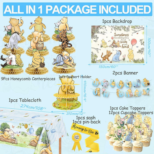 Vintage Winnie the Pooh Baby Shower Decorations Kit – 9-Piece Honeycomb, Banner