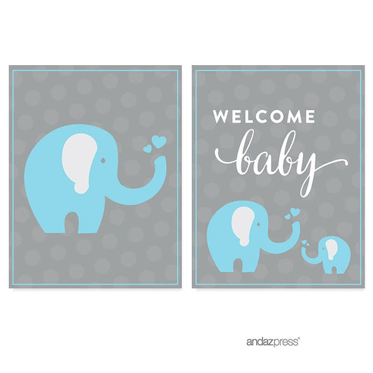 Boy Elephant Baby Shower Party Signs & Banner Decorations, 20-Pack