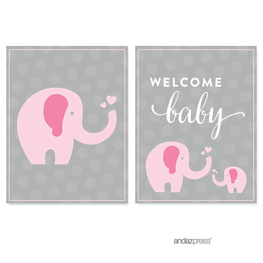 Pink Girl Elephant Baby Shower Party Signs & Banner Decorations, 20-Pack