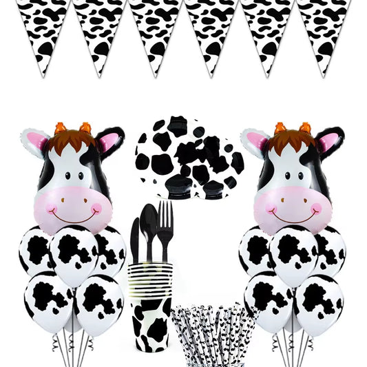 Farm Cow Theme Birthday Party Disposable Cup Plate Tablecloth Animal Cow Balloons Baby Shower Wed...