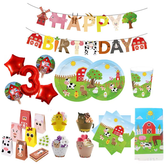Baby Shower Farm Animals Theme Party Favors Decorations with Balloon Cartoon Disposable Tableware...