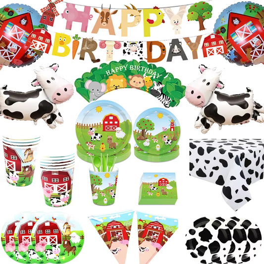 Farm Cow Theme Birthday Party Animal Party Cow Decoration Disposable Cups Plates Flags Tablecloth...