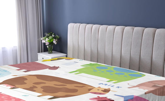 Cartoon Fitted Sheet, Cartoon Design Cows Colorful Barnyard Animals Bucket Farm Theme, Bed Cover ...