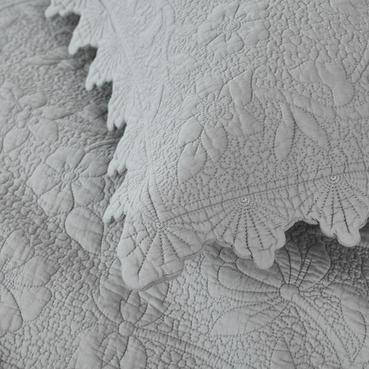 Quilted Pillow Shams Set of 2 Standard Size Cotton Grey Farmhouse Bedding Shabby Luxury Vintage P...
