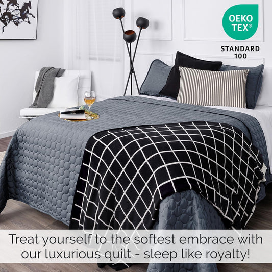 - Camden Quilt Set -Twin Quilt + One Standard Pillow Sham - Buffalo Check in Grey and Cream - Qui...