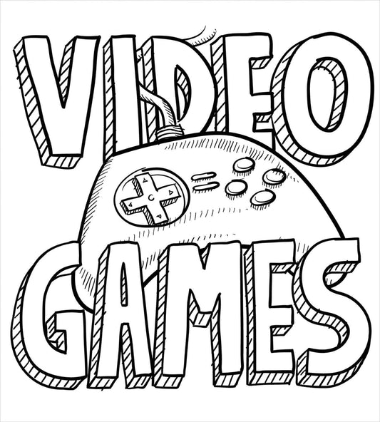 Cartoon Duvet Cover Set, Doodle Style Video Games Typography Design a Controller Sketch Art, Deco...