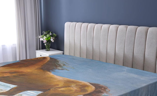 Animal Fitted Sheet, Nature Themed Painting of Chestnut Horse Galloping on Shore Print, Bed Cover...