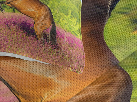 Horse Coverlet, Strong Bay Horse Rearing in Blossoming Rural Summer Field Trees, 2 Piece Decorati...