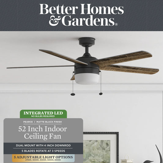 52" Pearce Modern Black Indoor Ceiling Fan with Light, Adjustable Color Temperature & Re...
