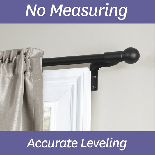 No Measuring Easy Install Cafe Window Rod, 18"-48", with Ball Finials, Black