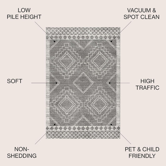 MOH200C-4 Amir Moroccan Beni Souk Indoor -Area Rug Bohemian Farmhouse Rustic Geometric Easy-Clean...