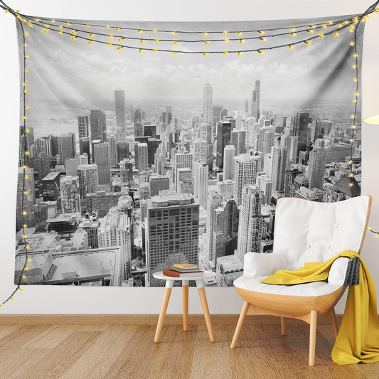 USA Tapestry, Chicago City Skyline Aerial View Contemporary Famous Touristic Places Picture Print...
