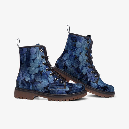 Emerald Blossoms - French Blue Hydrangea Casual Leather Lightweight Boots for Hippies