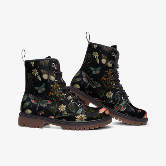 Emerald Blossoms - Pink Pastel Cherry Blossom Vegan Leather Festival Boots Combat Boots for Hippies