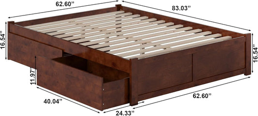 Concord Queen Size Platform Bed with Footboard & Storage Drawers in Walnut