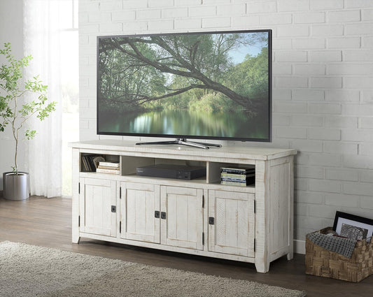 Martin Svensson Rustic Solid Wood TV Stand - Antique White and Honey Tobacco Finish - Hexagonal S...