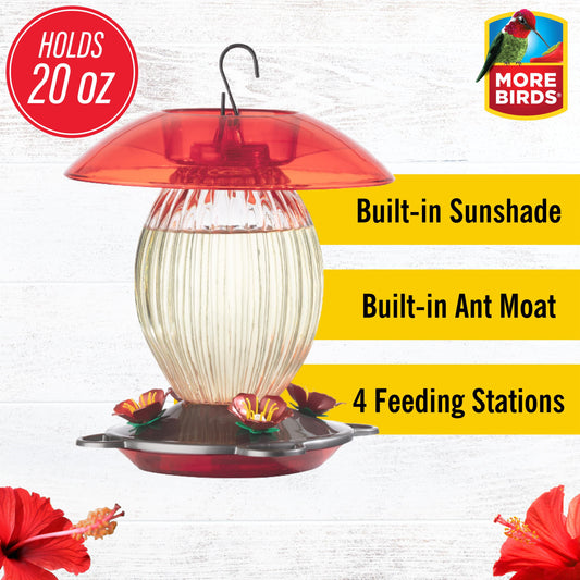 Glass Red Hummingbird Feeder, 16 Oz Nectar Capacity