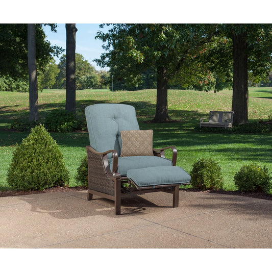 Ventura Steel Outdoor Patio Woven Luxury Recliner with Brown Wicker, Ocean Blue Cushions and Pill...