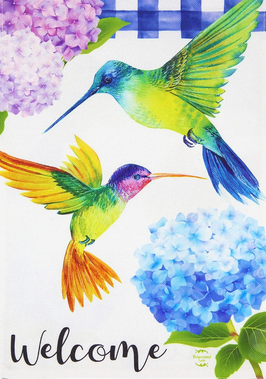 Hummingbirds and Hydrangeas Spring Burlap Garden Flag 12.5" X 18"