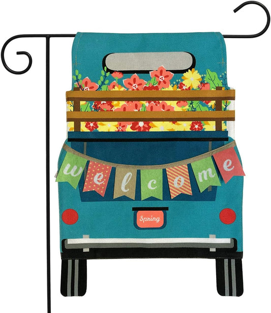 Springtime Pickup Burlap Garden Flag Welcome Floral 12.5" X 18"