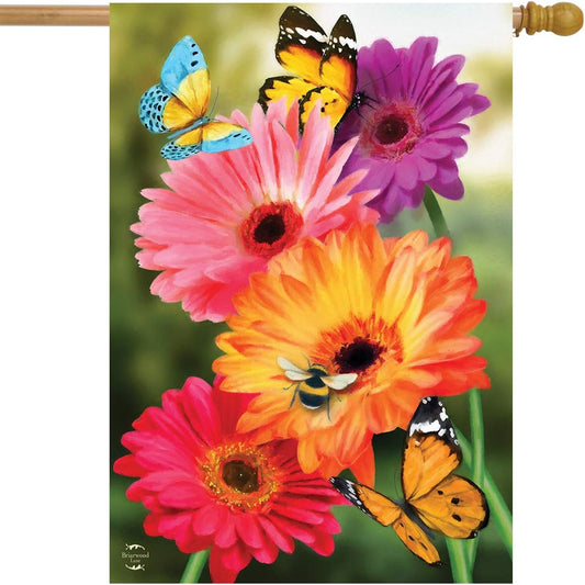 Garden Gerber Daisies Spring House Flag Butterflies Floral 28" X 40"