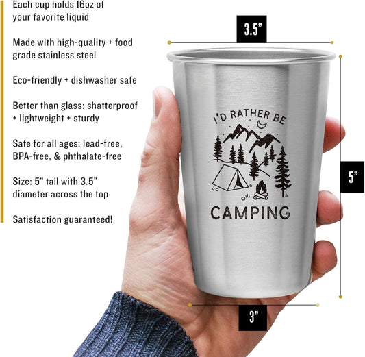 Rather Be Camping Stainless Steel Cup (16 Ounce) - Funny Gift Mug for Outdoorsmen - RV Gift, Happ...