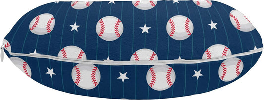 Sports Travel Pillow Neck Rest, Baseball Patterns on Vertical Striped Background Stars Design, Me...