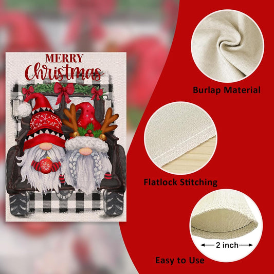 Home Decorative Merry Christmas Santa Gnome Garden Flag, House Yard Xmas Truck Antlers Black Buff...