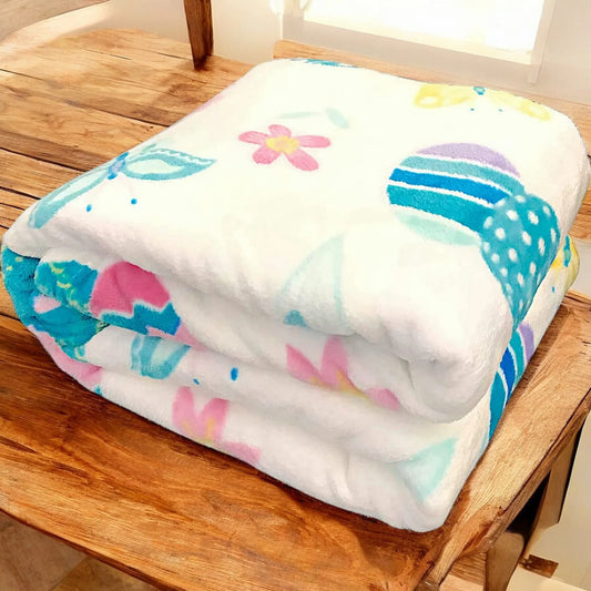 Spring Throw Blanket, Soft Cozy Velvet Fleece, Pink Blue White, 50" X 60" Inch