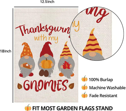 Thanksgiving Garden Flags for Outside,Fall Thankful Gnomes with Pumpkins Yard Flags,Small Seasona...