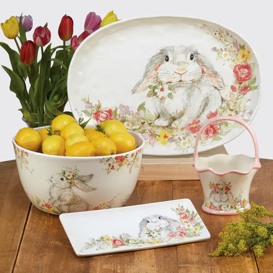 17.25 In. Sweet Bunny Multicolored Earthenware Oval Platter