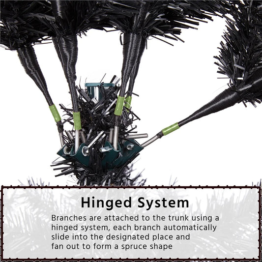 Clear Prelit Incandescent Black Hinged Spruce Artificial Christmas Tree, 7.5'